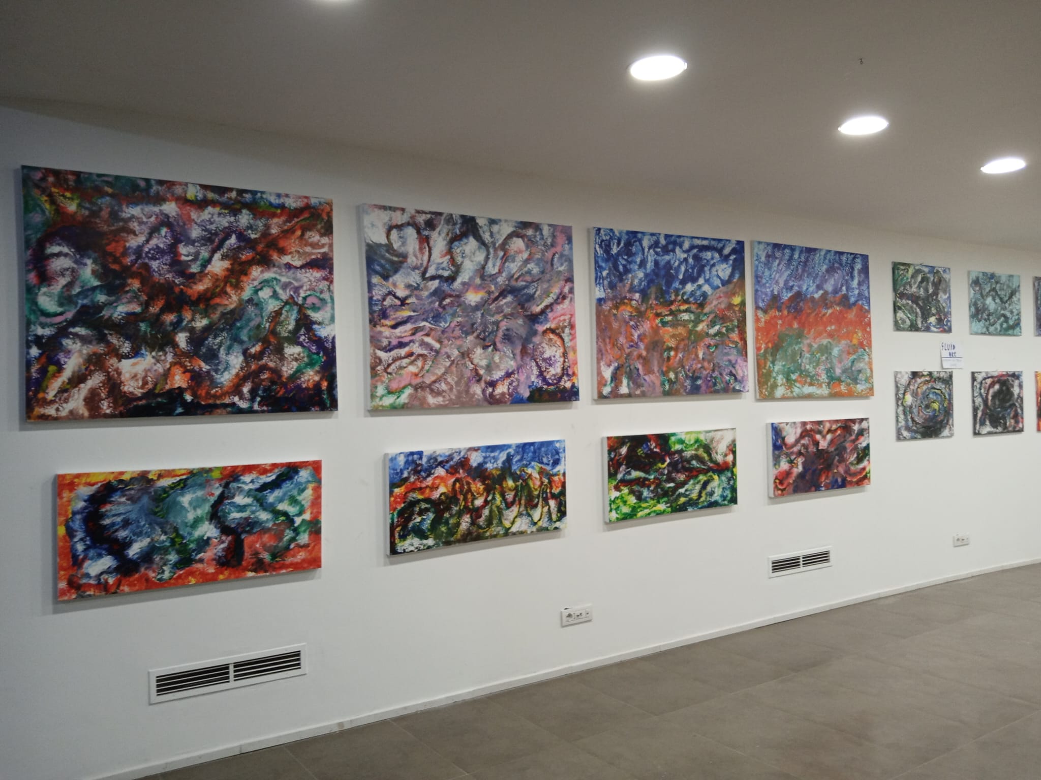 Pittura astratta eseguita con colori acrilici su tela, con la tecnica della...